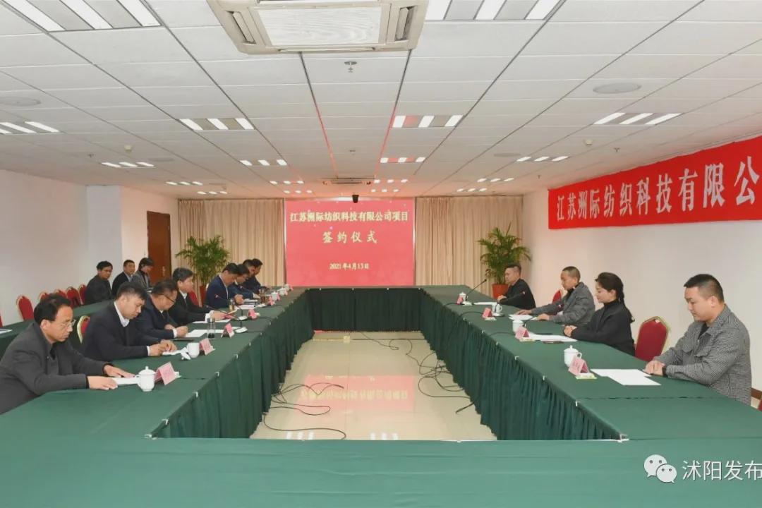4月13日下午,沭阳县举行江苏洲际纺织科技有限公司项目签约仪式。迪拜继洲贸易公司董事长左继洲,浙江嘿客纺织科技有限公司董事长夏丽娟,绍兴市湖南商会会长、浙江厚孚面料有限公司董事长邹湘平,浙江嘿客纺织科技有限公司总经理余师威,县委书记、经开区党工委书记卞建军,县委副书记、县长彭伟,县委常委、经开区党工委副书记、管委会副主任石敬峰,及相关单位负责人参加了此次签约仪式。