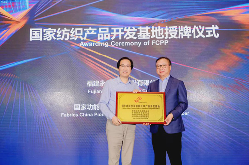 ![]() 会上还举行了国家纺织产品开发中心与福建永荣锦江股份有限公司的战略合作签约仪式以及国家纺织产品开发基地授牌仪式。永荣锦江正式加入并成为“国家功能性聚酰胺纤维产品开发基地”,孙瑞哲为企业进行了授牌。