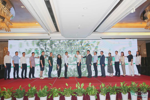 活动现场,中国印染行业协会会长陈志华、兰精中国区纺织事业部高级商务总监戴富强、杭州新生印染有限公司总经理李国信、广东前进牛仔布有限公司董事王宗文、北江智联纺织股份有限公司执行董事顾翔、愉悦家纺有限公司总经理王玉平、无锡市天幕特阔印染有限公司执行董事臧培兴、江苏联发纺织股份有限公司市场拓展部副总监赵陈红、鲁泰纺织股份有限公司工程技术研究院主任助理贾云辉、浙江美欣达纺织印染科技有限公司副总经理刘艳梅、亚东(常州)科技有限公司总经理薛良、常州东恒印染有限公司执行董事史辞忆、浙江嘉名染整有限公司副总经理钟坤祥、广东兆天纺织科技有限公司执行董事奚斌(疫情原因不能出席,新生印染总经理助理王长华代出席)、诸城裕民针织有限公司副总经理陈大勇、诺维信(中国)投资有限公司中国技术工业销售总监周文叶、上海雅运纺织化工股份有限公司董事长谢兵,共17位俱乐部成员共同上台,按下绿色指纹,宣示着天丝™纤维印染战略合作俱乐部合作正式起航,同时也为2021天丝™纤维中国区印染战略合作俱乐部巅峰论坛拉开序幕。