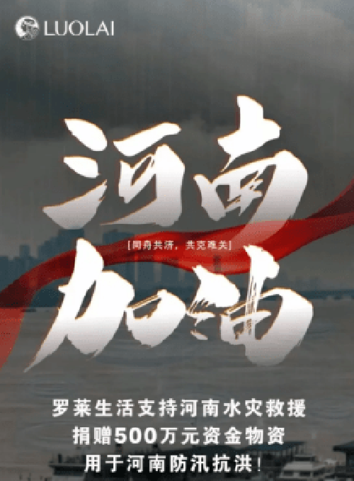 中国家纺企业罗莱生活科技股份有限公司捐赠 500万元资金物资用于河南防汛抗洪。