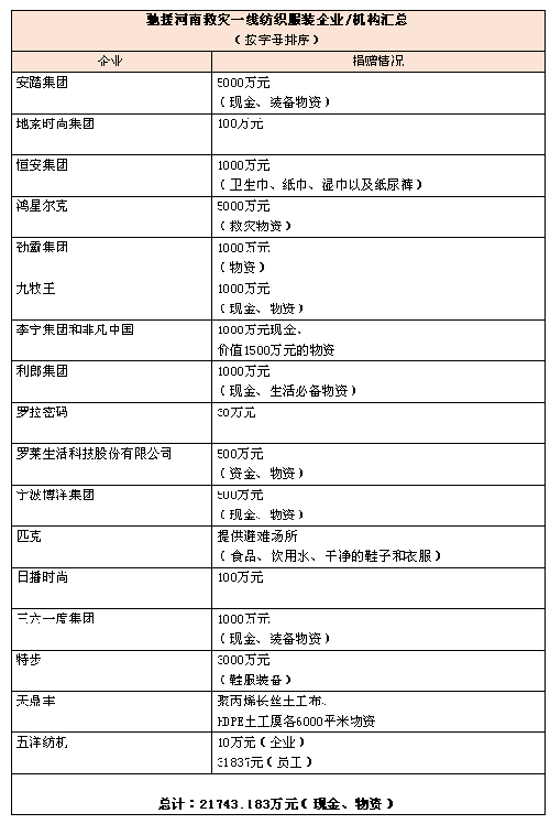 | 驰援河南,纺织服装企业累计捐资捐物超2.17亿元(附捐赠名单) |
