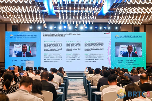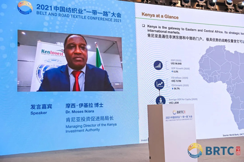 作为纺织业国际布局和“一带一路”合作的权威专业平台,中国纺织业“一带一路”大会自2013年举办以来,在推动纺织业“一带一路”建设沿着高质量发展方向不断前进方面取得了丰硕成果。 10月15日,2021中国纺织业“一带一路”大会在浙江湖州举办的,期间特别连线了来自肯尼亚、斯里兰卡政府部门和商协会负责人在线分享当地纺织业贸易投资合作机遇,引起现场观众积极反响。两位嘉宾在线接受采访时表示,感谢“一带一路”大会为助力纺织业国际合作进一步走深走实、行稳致远所做的工作,为帮助企业实现“可持续的贸易投资双循环”搭建起联动全球的平台与桥梁。 肯尼亚 期待纺织全产业链投资
