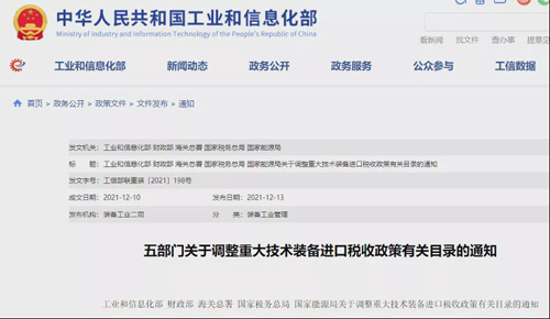 本刊记者-郝杰 据工业和信息化部官网消息,结合国内外形势变化,工业和信息化部、财政部、海关总署、国家税务总局、国家能源局等五部门近期对重大技术装备进口税收政策有关目录进行了修订,并自2022年1月1日起执行,其中内容涉及棉纺成套设备、非织造布成套设备。