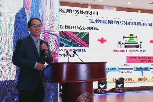 ![]() 东华大学纺织学院副院长、教授王富军作了题为“生物医用纺织品的发展与战略”的报告,他从生物医用纺织材料现状、纺织基医疗器械研发案例、生物医用纺织材料发展三个方面对你这一主题进行了解读。王富军认为,生物医用纺织材料市场巨大,全球医疗器械市场产业规模超5000亿美元,是发达国家的支柱产业;中国是全球潜力最大的生物医用纺织材料市场,但产业以中低端产品为主,高端产品进口为主,需求迫切。