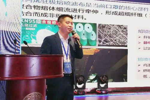 康卫民还对高效低阻熔喷驻极滤布制备技术、树枝状电纺纳米纤维膜制备技术、非对称高阻隔PU多级孔防水透湿膜制备等技术进行了介绍。