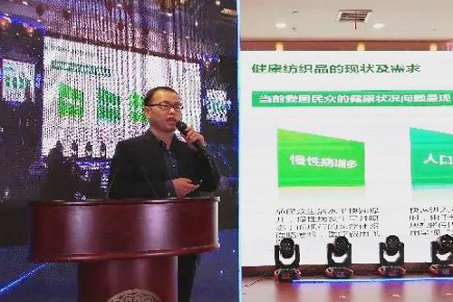 ![]() 鲁泰工程技术研究院基础技术研究室副主任、高级工程师张凯对“健康纺织品的市场需求及产品开发”情况进行了说明。他从再生纤维、环保纤维、可降解纤维三个方面对鲁泰开发的健康纺织品及主要客户进行了介绍。