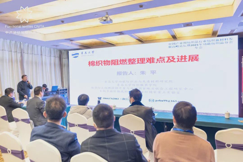 ![]() 青岛大学教授刘云、副教授蒋之铭分别介绍《高效阻燃织物的制备及性能》和《高效可再生抗菌棉织物的制备及其阻燃多功能研究》的详细研究技术报告,通过产学研项目中作研究成果分享。