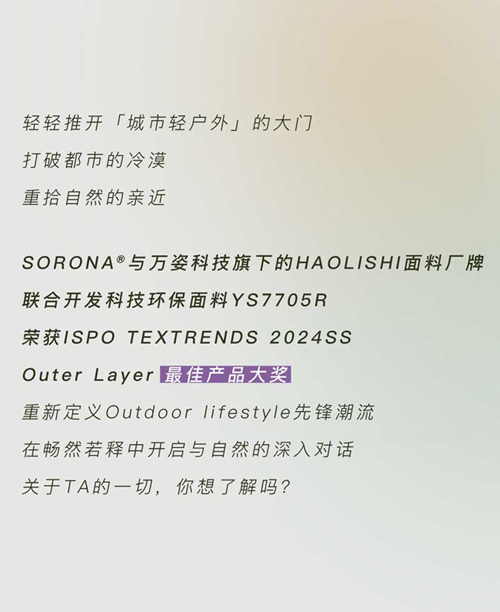 SORONA® x HAOLISHI ISPO获奖面料,开启Outdoor lifestyle先锋潮流!