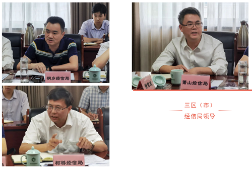 ![]() 上右图:萧山区经信局局长韩梦龙;上左图:桐乡市经信局副局长夏汉杰;下图:柯桥区经信局副局长王华良