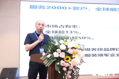 ![]() 杭州宏华数码科技股份有限公司副总经理郑靖以《数码喷印技术,助力印染产业转型升级》为题介绍,数码印花技术可有效提升和改造传统产业链,实现柔性快反供应链。宏华数码拥有色彩引擎、超大容量数据众核并行处理、精密机电控制系统、纳米墨水等核心技术,是纺织数码喷印机单项冠军。