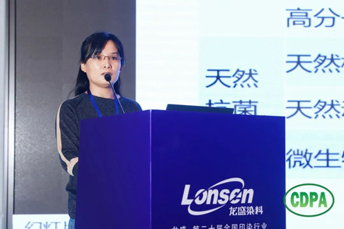 ![]() 山东鲁联新材料有限公司研发中心博士蒋莹莹以“纺织品抗菌整理技术”为题,从抗菌剂种类及抗菌机理、抗菌技术新进展、抗菌效果及安全评价以及抗菌纺织品生产现状及存在问题四个方面进行了分享。她介绍,目前抗菌新技术主要有天然抗菌剂、光催化抗菌剂、反应结合型抗菌剂。抗菌纺织品生产和加工方法,主要有抗菌纤维制备法,如混合纺丝和复合纺丝;后整理法,如表面涂层法、浸轧法和微胶囊法等。纺织品抗菌整理技术虽取得了一定成绩,但存在抗菌剂有效期较短,抗菌剂的生态环境安全性不足等问题。