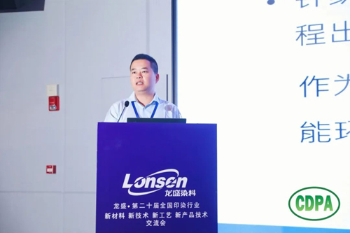 ![]() “分散染料的色牢度是当下引发售后纠纷的主要问题之一。”浙江龙盛集团股份有限公司资深应用服务工程师肖幸丰作“新一代高牢度分散染料和活性特深黑的解决方案”主题分享时说,分散染料的色牢度问题主要包括水洗后有残液、泡水牢度差、汗渍牢度差、升华牢度差等。“浙江龙盛集团新一代分散高牢度染料LHF系列,在提升水洗牢度的同时,兼顾汗渍牢度、水浸牢度等,同时在泡水牢度等多方面也有很好的表现,能有效解决各类涤纶织物染色后在清水或洗衣粉中浸泡出现的落色、沾色、串色等问题。”肖幸丰介绍说。在活性特深黑领域,浙江龙盛集团成功开发出活性极致黑WG-400%,为活性染料的进一步发展,全面取代硫化染料、还原染料等提供了范本,正在逐步实现“染深比墨还黑、染色残液还水清”的愿景。