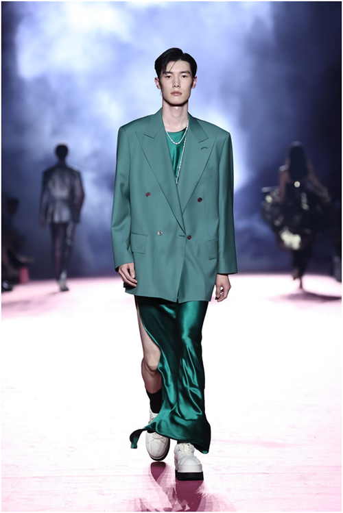 ![]() 9月11日傍晚,Beautyberry2023 S/S时装在北京 751D•PARK火车街区发布,设计师王钰涛以PEAK/顶峰为主题登陆中国国际时装周。在充满未知与不确定性的当下,王钰涛再次发起对审美文化的探讨,引发大众对平衡与冲撞的思考。