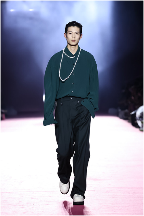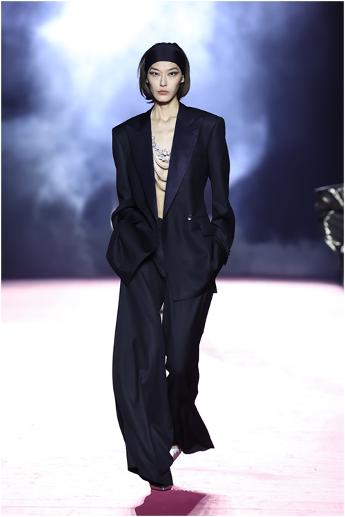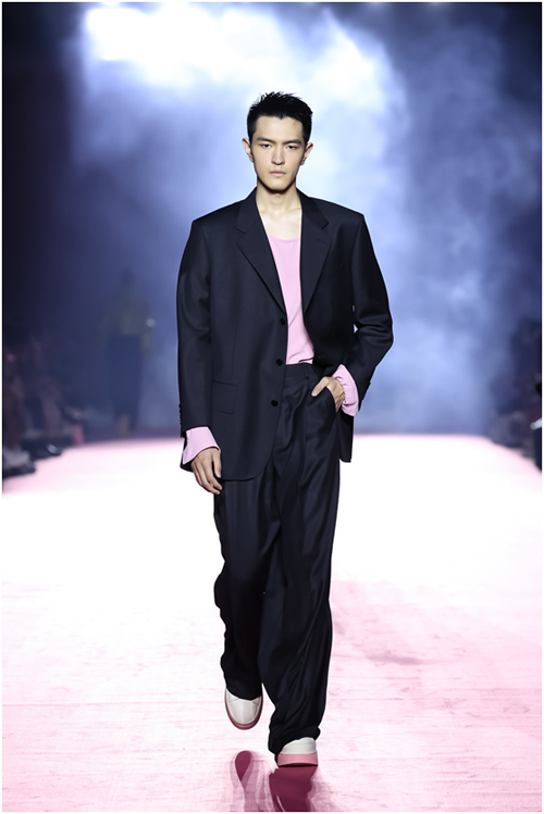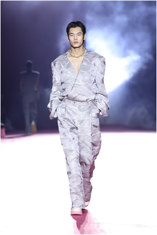 ![]() 在巨型全粉的露天秀场,没有人可以置身事外,这是在极短的时间里,时装与艺术最高频的对话,也是一切细节浮动的精彩时刻。音乐的震动隐匿于服装的流动中,模特动态的轨迹被强行拽入时代的洪流,静止般“刺入”视线。本季,男性线条流畅与女性线条的刚硬形成对比,在冲突中用色彩抵达和谐,复古与未来交织,情绪与行为互补,从容踱步,设计理念缓缓流淌,即追溯过往,也启幕新的纪元。