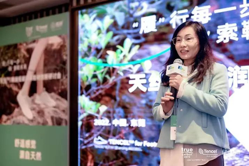 ![]() 兰精纤维中国区纺织事业部市场推广负责人李琦受总经理戴富强的委托致辞道,作为纤维素纤维产品的全球领导者,兰精集团一贯坚持生态优先、绿色发展的理念,很高兴同长期合作伙伴联润一起,同各位鞋类专家一同探索绿色材料的创新与运用。她提到兰精公司旗下的天丝™品牌自1992年创立30周年以来,从节能减排、循环经济着手,多维度开发了诸多具备可持续性的新产品。在鞋类应用上,天丝™品牌推出“全鞋”概念,可通过粉末、纤维、织物等各种形态融入鞋子的各个部分,为下游提供多重可持续创新之选。未来,兰精集团还将深入推动循环经济模式,推动行业发展由线性经济向循环经济转变。