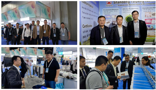 ![]() 此次中国展团阵容强大,包括山东永信非织造新材料有限公司、恒天重工股份有限公司、山东泰鹏环保材料股份有限公司、浙江锦达膜材科技有限公司、浙江古纤道绿色纤维有限公司、杭州洁诺实业有限公司、仙桃市瑞锋卫生防护用品有限公司等产业用纺织品国内知名生产企业及供应商共36家,参展面积合计378平方米,向外界展示了中国产业用纺织品行业最新的科技成果、应用案例和服务。