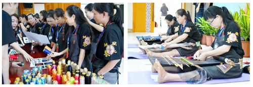 本期培训由中国纺织工业联合会非遗办和海南省妇女联合会协办。领导嘉宾、师资团队代表以及20位参培学员共同出席开班仪式。开班仪式及黎族文化参观交流活动在海南省民族博物馆举办。