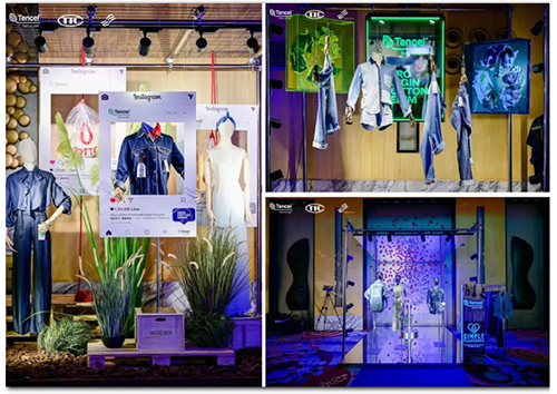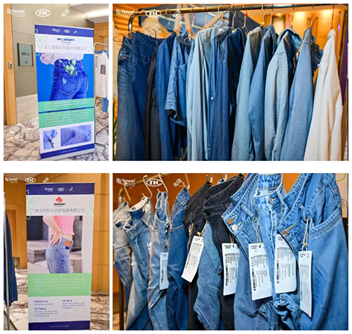 ![]() 在会场发布区内,兰精最新的天丝™牛仔系列创新应用新品引人注目。