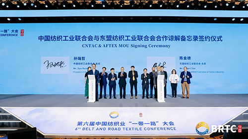 ![]() 近年来,东盟地区的纺织产业发展举世瞩目,为了更好地服务中国与东南亚地区各国的纺织产业交流,大会现场,在中国与东盟各国纺织服装商协会代表的见证下,国际纺织制造商联合会主席、中国纺织工业联合会会长孙瑞哲和东盟纺织工业联合会主席陈金德代表双方签订合作谅解备忘录。
