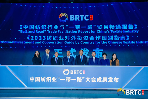 ![]() 大会现场,中国纺织工业联合会市场部、国际贸易办公室,中国国际贸易促进委员会纺织行业分会联合发布了《中国纺织行业与“一带一路”贸易畅通报告》《2023纺织业对外投资合作国别指南》。此外,“纺织走出去”小程序 “自贸协定税率查询”功能也全新上线。