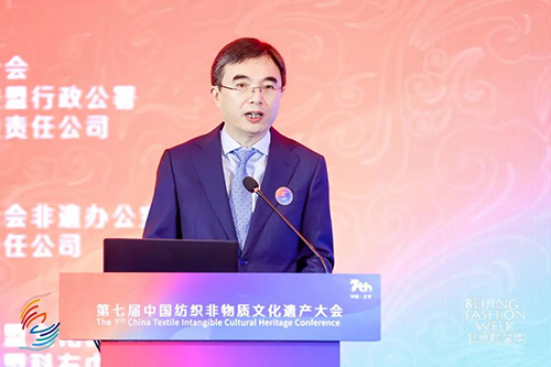 ![]() 文化和旅游部非物质文化遗产司司长王晨阳致辞时表示,多年来,中国纺联以传承弘扬中华优秀传统文化为己任,在非遗保护方面做出了卓越的努力,也收获了丰硕的成果。中国纺织非遗大会自2017年开始已成功举办了六届,提出了纺织非遗保护倡议,发布了中国纺织非遗发展报告,有效带动更多力量参与,在脱贫攻坚、乡村振兴等国家重大战略和重要任务中发挥了重要作用,体现了非遗融入现代生活、服务人民群众的当代价值。