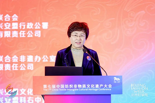 她指出,本届大会主题是“中国式现代化进程中纺织非遗高质量发展”,体现了纺织非遗工作的新要求。当前形势下纺织非遗的高质量发展,一要坚持与时俱进;二要坚持守正创新;三要坚持以人为本。弘扬中华优秀传统文化,振兴传统纺织技艺,传承纺织非物质文化遗产,对中国纺织发展至关重要,也是时代责任。要充分发挥传承人、企业家、非遗大使作为非遗传承创新践行者的推动作用,将纺织非遗融入新市场新生活新时代,在实现中国式现代化进程中绽放非遗的风采。