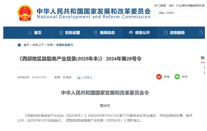 日前,国家发展改革委修订出台《西部地区鼓励类产业目录(2025年本)》,明确对西部地区从事鼓励类产业的企业减按15%的税率征收企业所得税,是西部大开发的重要政策之一。目录共包括两部分,一是国家现有产业目录中的鼓励类产业,二是西部地区新增鼓励类产业。