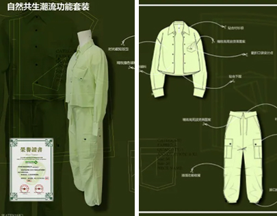 随着消费者对环境保护意识的加深,更多人开始践行节能减排、绿色环保的生活理念。思考如何解决传统梭织面料的化纤感强、容易产生噪音、静电等不足之处,促使不断寻求改进和创新解决方案,以提高其性能和环保属性,自然共生潮流功能套装应运而生。