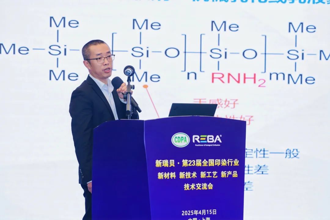 ![]() 传化化学集团纺化事业部棉用硅油研究所产品研发工程师冯一峻分享了纺织用有机硅功能化应用新趋势,当前纺织行业对绿色化、功能化的迫切需求,使我们重新思考有机硅柔软剂的发展方向。为此,传化开发了一系列突破性解决方案:生物基硅油技术实现生物基含量超50%,远超行业20%的标准;聚酯硅油技术能显著提升涤纶织物的吸附力和耐久性;耐氯牢度方案将色变率降低50%;湿摩擦牢度的提升在不影响手感前提下,将干湿摩擦牢度提升0.5-1级;高稳定性缸中过软方案减少乳化剂用量60%。这些创新不仅满足绿色环保要求,更通过多功能集成简化了加工流程。