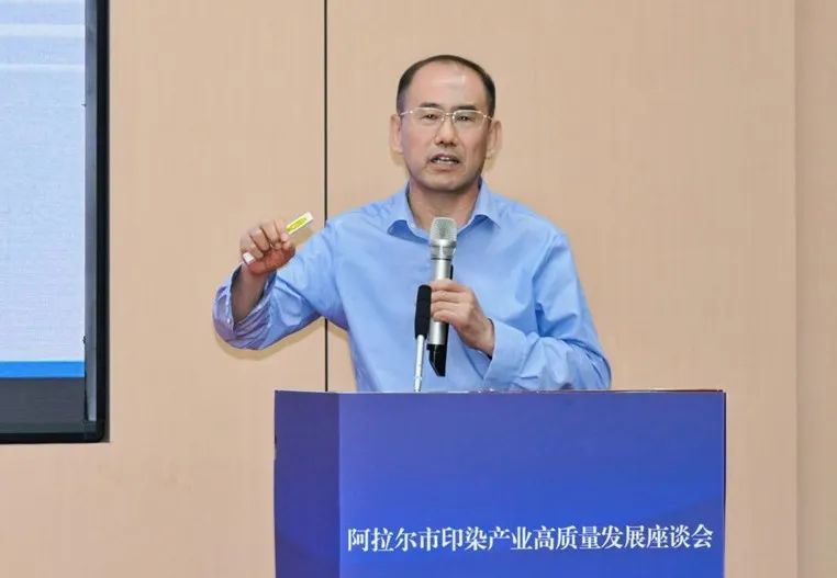 针对阿拉尔印染产业发展,他指出,新疆棉花纤维长度长、强度高、马克隆值优、色泽洁白、一致性好,是高品质棉花的代表。基于纤维纱线和织物的无盐高品质印染加工,可赋予新疆棉纺织品更高的附加值,显著降低水、能源及化学品消耗,实现印染生产的绿色化和低碳化。