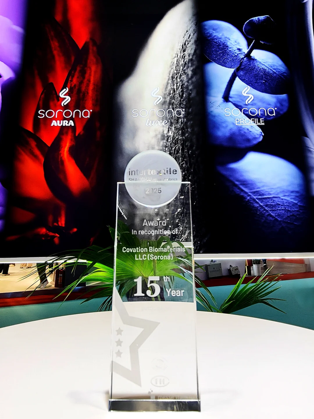 ![]() 值得注意的是,SORONA®与Intertextile面辅料展相伴同行也已有15年之久。为了表达对SORONA®15年来坚定选择Intertextile以及在推动全球纺织行业可持续转型升级方面作出的杰出贡献,展会期间,主办方还专程组团到访SORONA®展位,并在晚宴上为SORONA®颁发了表彰奖杯,用实际行动表达了对SORONA®的感谢以及行业的高度认可。而这,不仅为SORONA®的2025 Intertextile秋冬面辅料展之行带来了惊喜,也为SORONA®携手生态伙伴们奔赴新征程提供了更多信心与动力——即使百舸争流、千帆竞渡,SORONA®走出的每一步,都将被看到、被认可!