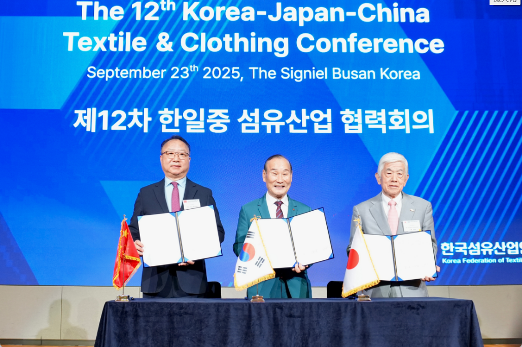 ![]() 会议期间,三国协会会长共同签署合作协议,各方代表达成共识:在保护主义蔓延导致全球贸易秩序遭受重大冲击的背景下,三方认识到增强供应链韧性与加强贸易合作的重要性,一致同意未来需建立稳定公平的贸易体系,包括推进中日韩自由贸易协定(FTA)进程。三方将围绕循环经济与ESG、智能制造与数字创新等方面开展交流与并加强合作,以此共同促进纺织服装行业的可持续发展。