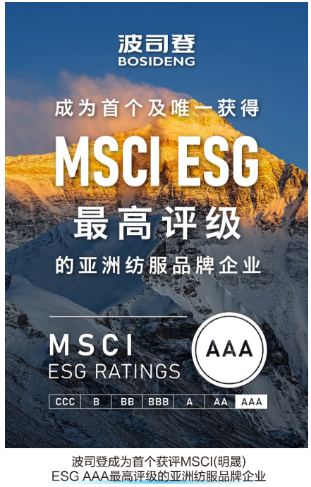 ![]() 作为亚洲纺织服装行业首家及唯一一家获得MSCI ESG AAA评级的企业,波司登在ESG(环境、社会及治理)方面的表现尤为突出。公司将可持续发展理念深度融入企业运营的各个环节,实现经济效益与社会效益的协同发展。