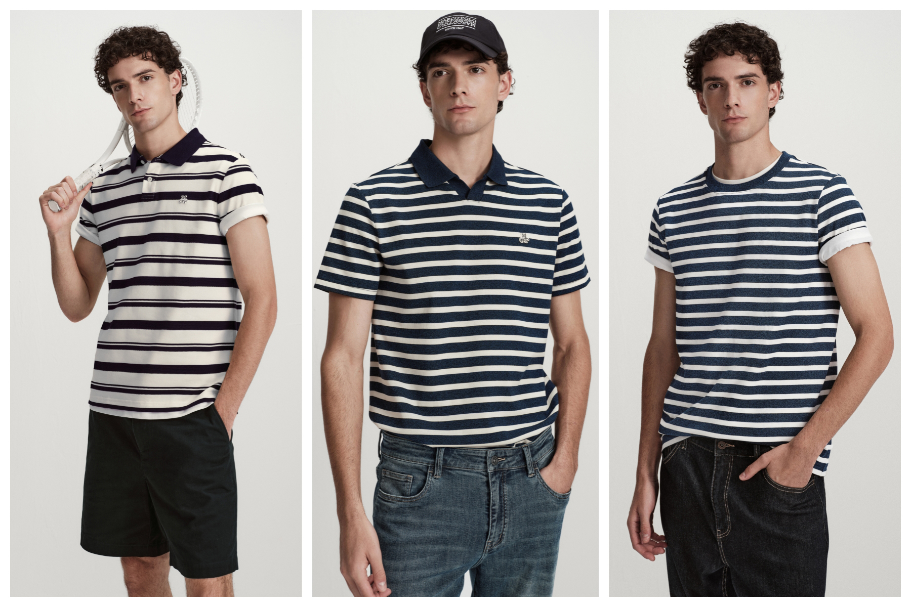 自 1967 年起,Marc O’Polo便以自然哲学为原点,将对环境的善意,织入每一根天然纤维。本季无水染色系列携三款经典单品登场——黑白变化条纹Polo、海鸥领藏蓝条纹Polo、圆领藏蓝条纹T恤,均采用100%纯棉打造,赋予面料原生亲肤感与持久透气性。