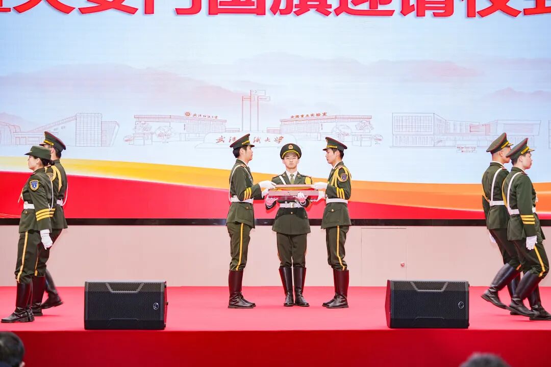 ![]() 校党委书记徐卫林院士 郑重地将天安门国旗
