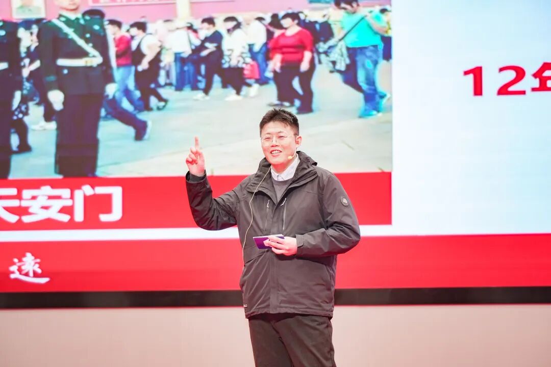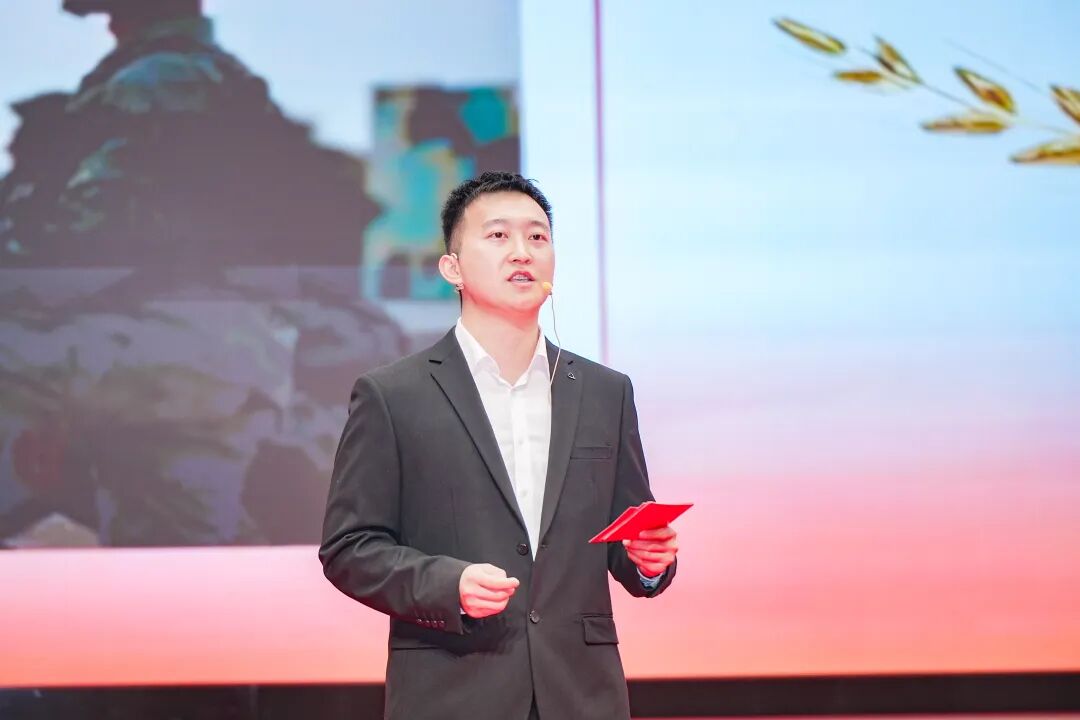 ![]() 仪式上,青年教师代表、月面国旗研制团队成员曹根阳,深情讲述了团队攻坚克难研制月面国旗经历,从跨越38万公里的漫漫征途,到见证国旗成功亮相月球的激动时刻,他们以沉稳踏实的态度深耕育人,助力学校发展,坚守爱国初心,引导同学们将爱国情怀转化为实际行动,从力所能及的每一件事情做起,追随一束光,成为一束光。