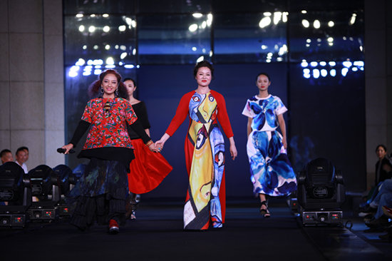 现场要求购买张义超作品的观众(中)最后和张义超(左一)一起,上台穿作品进行走秀展示。 除了上述两大发布环节外,在本届重庆时装周的闭幕之夜,还上演了一场极具新意学生设计师时装发布秀。这场发布会的设计师全部来自重庆当地高校时装设计专业的在校大学生,他们刚刚获得“十佳新人设计师”的称号。 重庆市纺织工业联合会会长马明媛表示,总体来看,这场发布会充满了新奇与生机,所有的新锐设计力量都是不容小觑的时尚后起之力。重庆时装周的闭幕秀代表了重庆时装产业的未来,以新生代设计师为主的设置也和这一主旨暗合。 回顾本届重庆国际时装周,从9月22日各国设计师携手发布开幕大秀开始,到随后数日连续举办的“遇见.fashion”,“我型我show”,“感受.nature”,“天使的蜕变”几大主题专场发布秀,才刚刚起步的重庆时装周就收获了诸多的成功与惊喜。 重庆时装周搭建的国际平台既让当地的各大品牌在秀场上大放异彩,又吸引了全国及海外的多位设计师在重庆亮相。于此同时,在第二届重庆时装周期间,同期举办的设计师沙龙及多场论坛活动也直接为促进当地纺织服装产业提升起到了至关重要的带动作用。 从重庆南滨路烟雨公园,到具有城市象征意义的时尚中心解放碑,再到举办闭幕大秀的山城后花园北碚。才刚刚举办两届的长安福特新蒙迪欧中国重庆国际时装周为重庆献上了令人难忘的时尚盛典。 正如重庆时装周艺术总监张义超所言:“我们放弃了创意空间、酒店、或有更好舞台效果封闭的室内场馆,选择了重庆时尚最著名的三个地标,在户外进行时装周发布,这种方式既能够结合了独具魅力的山水人文景观为背景,把户外的景观纳进秀场,又能够让老百姓参与其中,通过口口宣传的形式,参与到现场看秀的过程中来,这才是最适合重庆的时装周操作方式”。 正因为有重庆时装周找到了最适合自己的表达方式,所以重庆服装产业也因此具备了新的时尚元素和有力的时尚态度。 |