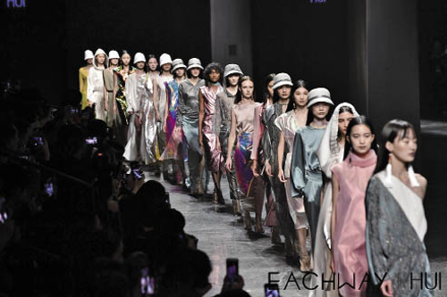 远行,让西方认可东方设计 一开始,赵卉洲只是单纯地设计自己喜欢的衣服,但是随着见识的增长、品牌的发展,她的设计动力转变为——在当代时尚体系中,如何对东方美学的根和魂进行阐释与浸透。 2014年对赵卉洲来说是不寻常的一年,这一年,她成为北京APEC会议领导人服装的核心主创设计师之一。与APEC结缘,似乎为她后来的决定埋下了伏笔。当年她就说:“在西方服装界统领世界时尚的今天,中国服装代表的东方气质或许还有很长的路要走。在APEC,我们只是播下一颗种子,期望它赶快发芽、成长,直至开花。用国际化元素表达东方韵味,这是我一生的职业追求。” “让西方认可东方设计!”怀揣着这份理想与期待,在北京APEC会议后的第二年,赵卉洲带着全新的原创设计品牌HUI登陆欧洲大陆。不过后来她坦言:“出了国才知道,原先眼中的那种东方元素,西方时装压根儿就不认!” 赵卉洲认为这其中的关键,便是要让东方元素有国际化的表达,而这首先就要以产品背后的可持续发展作为重要参考。中外时尚业的差别或者说差距,也许根本就在于理念,真正与国际时装体系中的精英同场切磋、比试交流,才能快速开阔视野,与国际先进理念接轨,并由此反观自己、审视来路,去粗取精、提升成长。狭路相逢,对战高手,也才能一窥门径、技艺飞长。 幸运的是,经过深入思考的赵卉洲避开了许多设计师恋栈于服装表象设计的弯路,她跳出服装设计,着力于扩大国际化视野,而不是先考虑品牌的市场占有率。“第一次走向国际的舞台,与其说忐忑,不如说心里更多的可能是期待,因为大多数的思考和时间都留给了知识的汲取,我像一块脱水的海绵,疯狂地开始吸收西方的服装文化,与国外设计师寻求合作,确保HUI从骨血中达到东西方兼容。” 2015年9月,2016米兰春夏时装周如期而至,赵卉洲作为那届米兰时装周上第一位来自中国的设计师,携HUI“记忆的空盒子”系列时装,成为时装周上的意外惊喜。HUI吸纳与培养了来自世界各地、匠心独运的服饰工艺传承人,创新发掘与再创造,并以独具东方特色的“非遗”元素连续征战三届米兰时装周,重新定义了中西合并的时尚之美。 在米兰首秀大获成功之后,赵卉洲入乡随俗进驻国际showroom,针对全球售卖产品,实实在在走市场化路线。此时的赵卉洲,本可以继续享受国外时尚行业优质资源,但她不安分的心又发声了——回国!