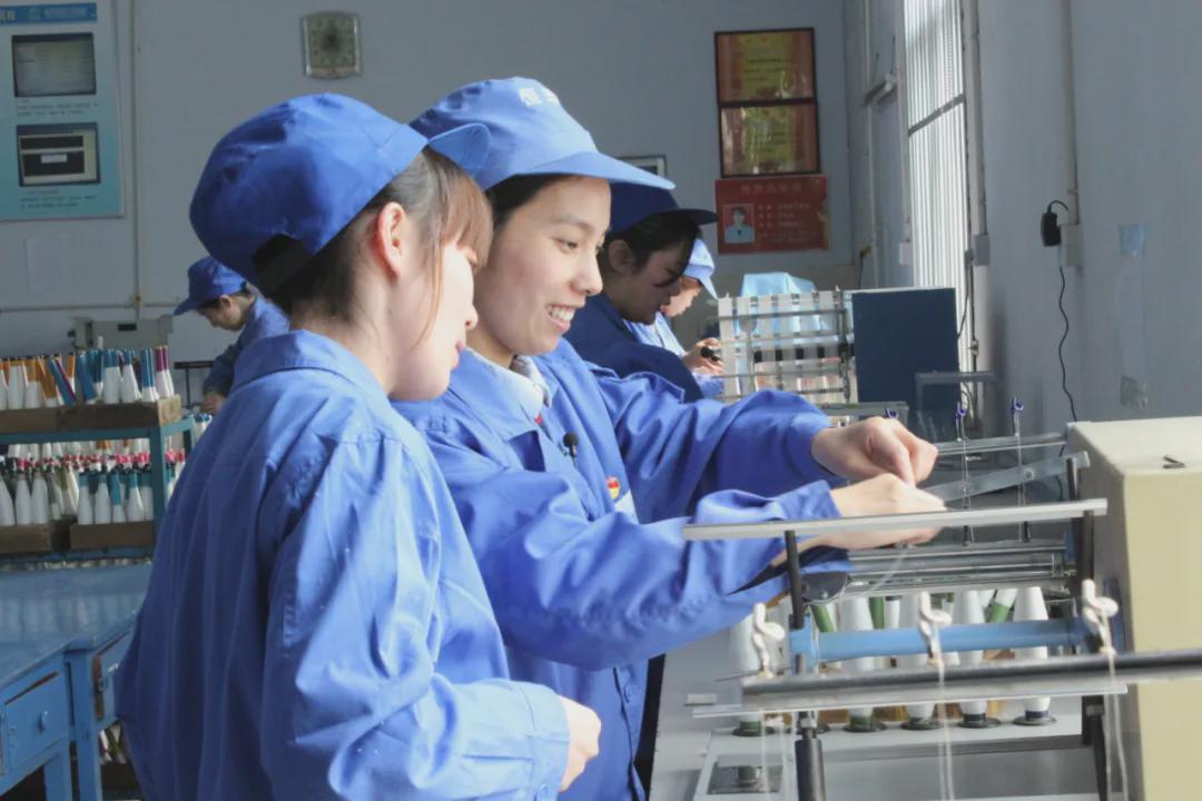 不断学习钻研,创新路上不止步。虽然理论功底扎实,实际操作能力精湛,但王晓菲始终坚持“要干就干最好”的工作准则。她不断学习钻研,提出不少合理化建议。2002年,企业在同行业中较早引进了氨纶包芯纱,试纺过程中,接头时,值车工需用剪刀剪断氨纶丝,效率低且极易割伤皮辊。“如何安全且高效地掐断氨纶丝”,王晓菲反复考虑这一问题,最终摸索出“食指勾断氨纶丝法”,提高效率的同时,也避免了设备配件的损坏。2011年公司引进改造罗卡斯紧密纺,传统的“抵管直线接头法”无法快速完成纱线接头,经过反复摸索总结,王晓菲独创“罗卡斯紧密纺斜接头法”和“罗卡斯紧密纺单手接头法”,既保证了断头率控制在工人正常巡回操作以内,又提升了接头速度,减轻了工人劳动强度。